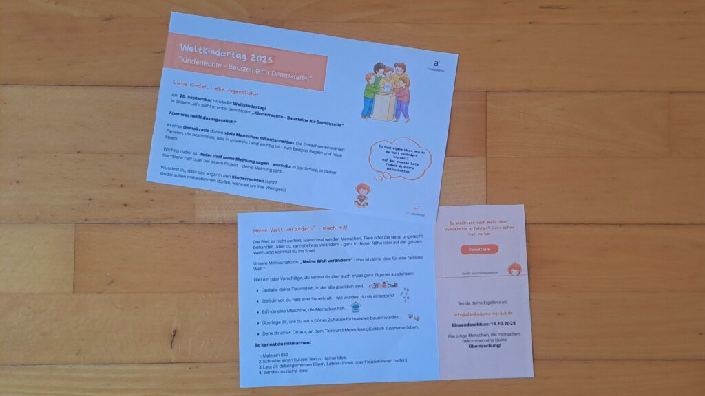 Am 20. September 2025 wird bundesweit der Weltkindertag begangen – in diesem Jahr unter dem Motto: „Kinderrechte – Bausteine für Demokratie!“